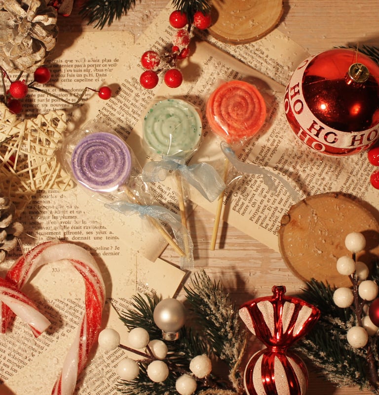 Bougies, fondants, boules de Noël personnalisées, chaussettes de Noël, coffrets cadeaux...